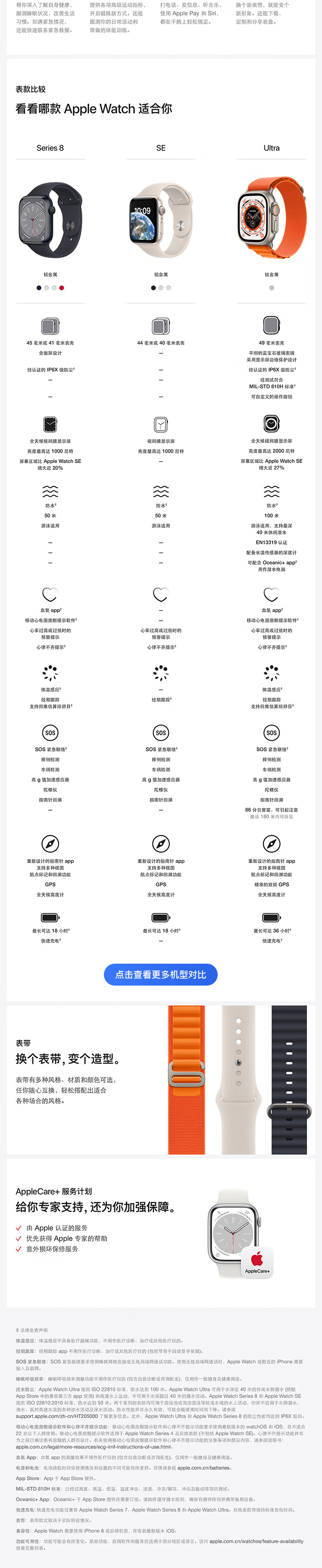 Apple Watch Series 8 智能手表GPS款41毫米铝金属表壳运动型表带MNP63CH/A
