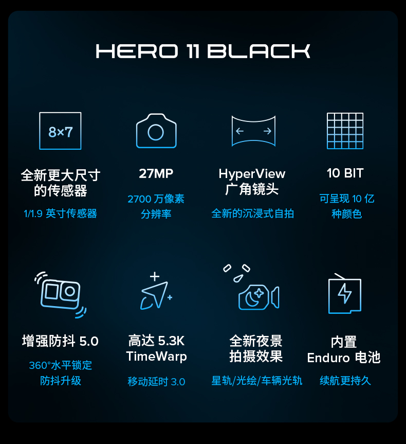GoPro HERO11 Black 运动相机 户外摩托骑行 防水防抖相机 Vlog数码运动摄像机